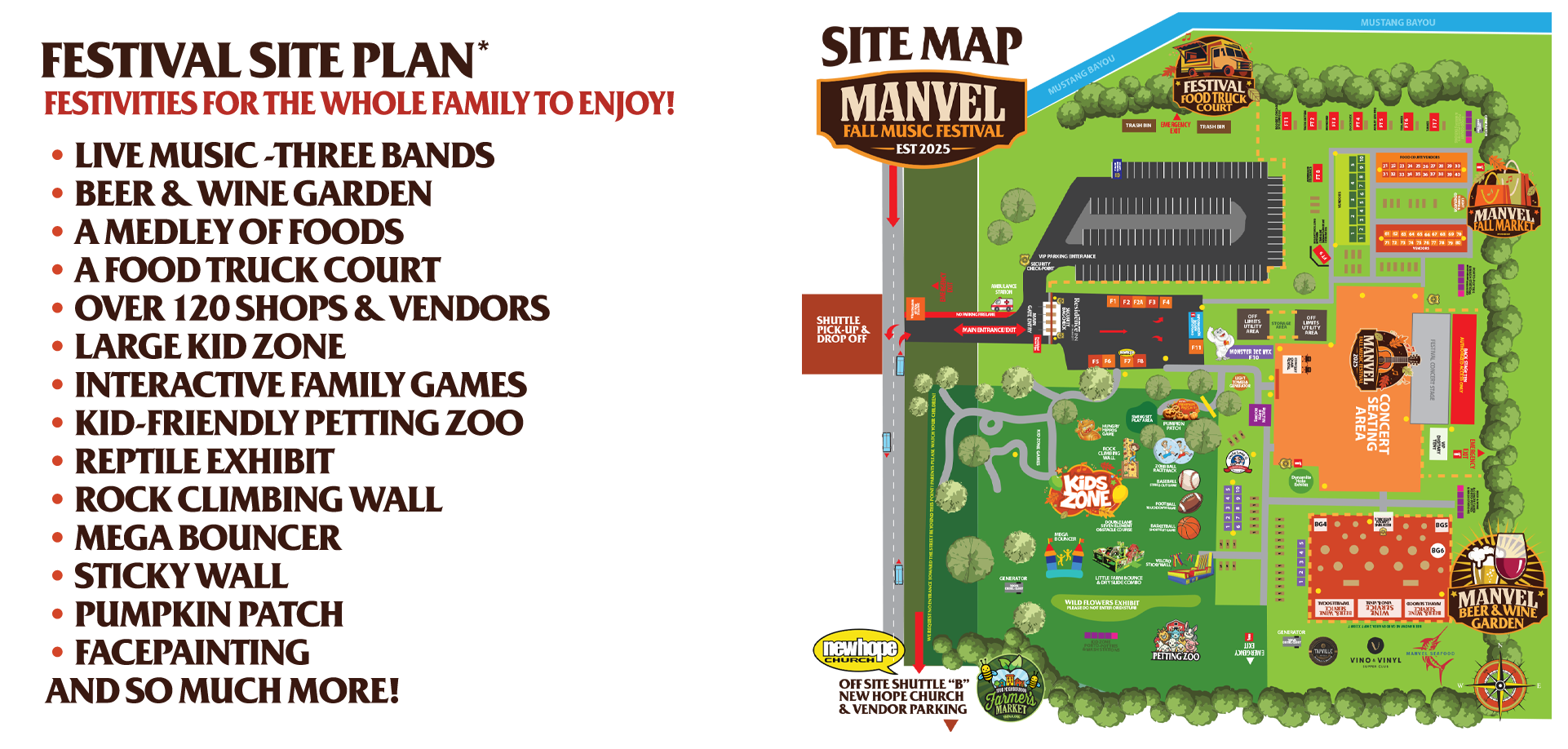 This music extravaganza will captivate all with its diverse lineup, from the rocking sounds of country and R&B to high-energy pop hits, ensuring every musical taste is satisfied as bands like the Neil Dover Band, The Gary-Micheal Dahl Band, and the Under Cover Band take the stage. Beyond the fantastic tunes, explore a vibrant Beer and Wine Garden, indulge in a medley of delicious foods from numerous vendors & food trucks, and discover unique treasures from over 120 award-winning vendors and artisans in our special Manvel Fall Market. Families will delight in the expansive Kid Zone, featuring interactive life-sized games like “Hungry Hippos,” an exhilarating 24-foot rock-climbing wall, mega bouncy houses, and an adorable petting zoo complete with a fascinating reptile exhibit, all alongside a traditional pumpkin patch perfect for those cherished photo ops! Mark your calendars now, because this Manvel Mega Music Event is poised to be a #1 hit on the festival charts, promising an exciting jubilee for everyone!